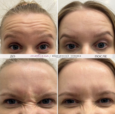 Фото до и после инъекций препаратом Диспорт. Процедуры проводят аттестованные косметологи Санкт-Петербурга.
