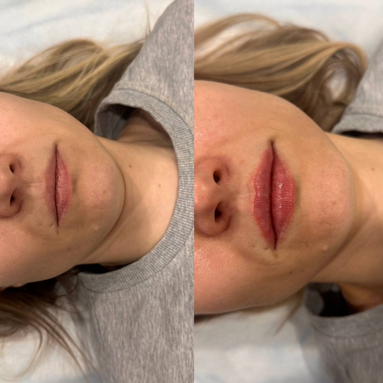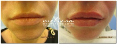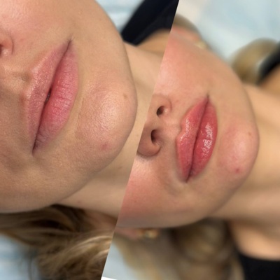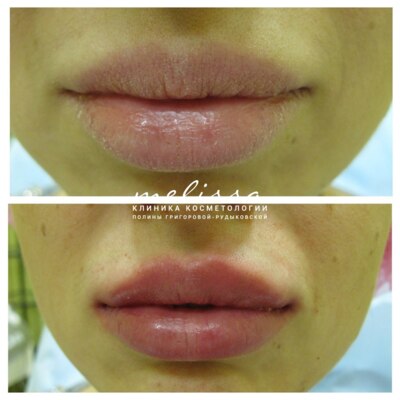 Фото до и после процедуры — увеличение губ. Уколы ботулинотоксинов и филлеров выполняют аттестованные косметологи Санкт-Петербурга.