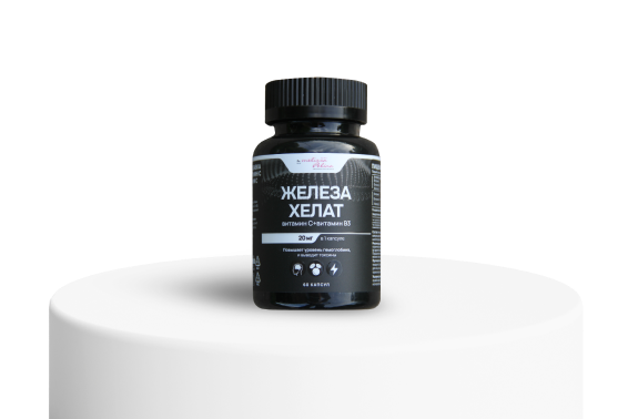 Хелатная форма железа — одна из самых биодоступных и безопасных. Благодаря особой структуре, в которой ионы железа «упакованы» в аминокислотную оболочку, оно легко усваивается в кишечнике, не раздражая слизистую и не вызывая запоров. Такая форма особенно подходит для длительного приёма и людей с чувствительным ЖКТ.